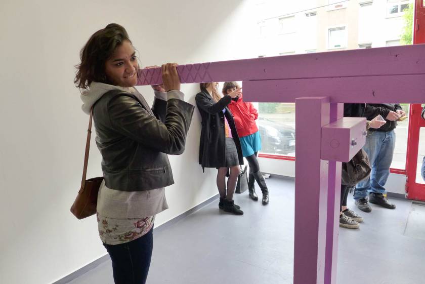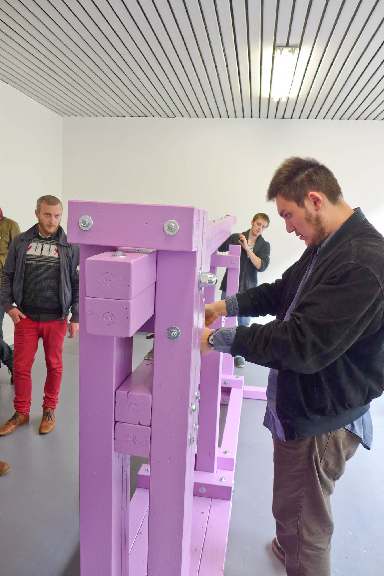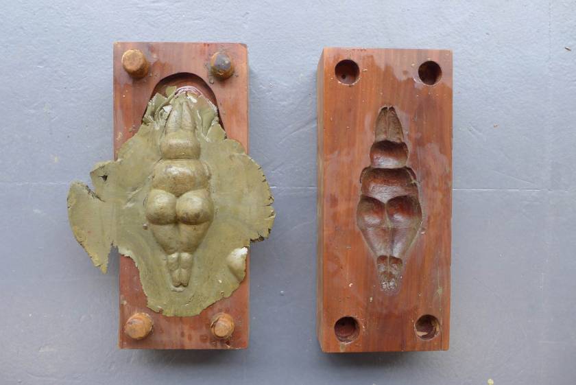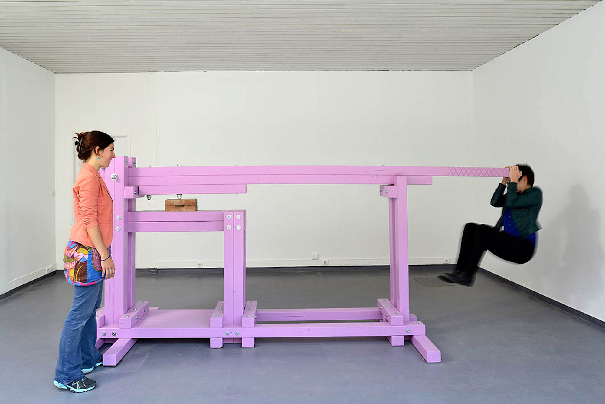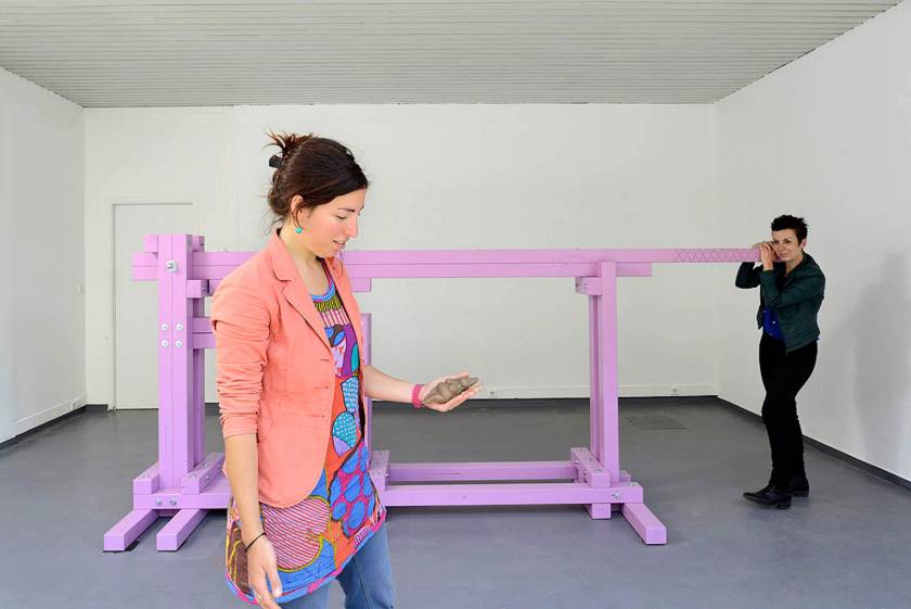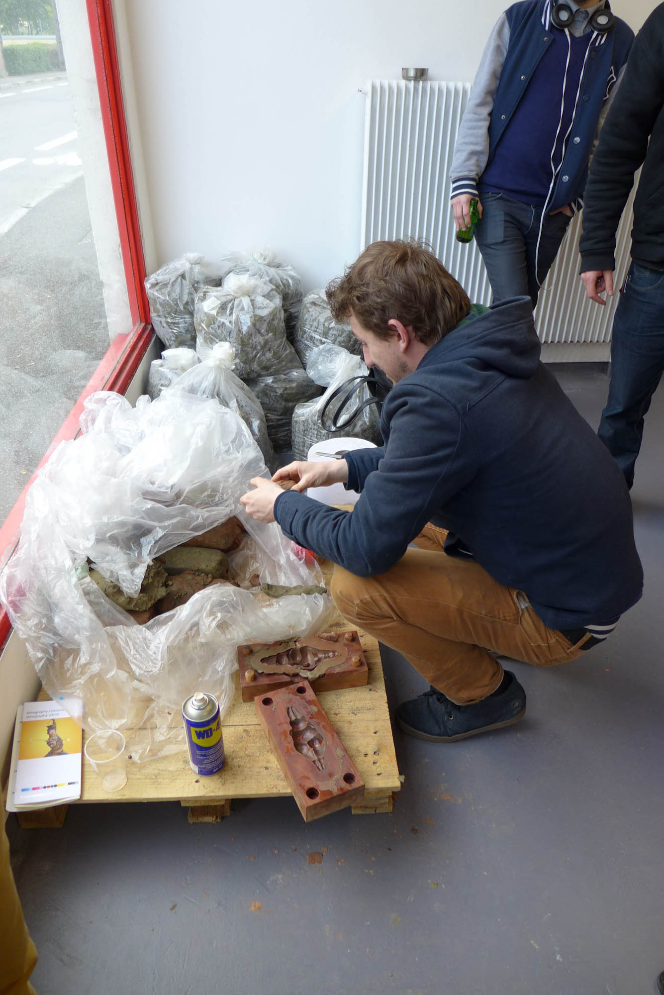 Invité à exposer à Toshiba House, espace indépendant à Besançon, Christian Gonzenbach propose de construire un outil archaïque : un appareil reproducteur. L’espace n’est occupé que par ce dispositif en forme de presse-ail. Ce système permet de produire des figures de Vénus-Lapine, adaptation de l’artiste des premières sculptures humaines connues. Chaque spectateur s’empare d’une poignée d’argile de carrière et presse sa propre statuette qu’il emporte. C’est le visiteur qui produit les sculptures qui disparaissent aussitôt, disséminées dans la ville.