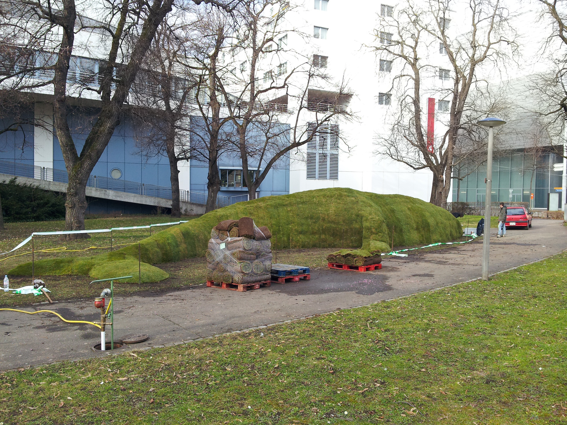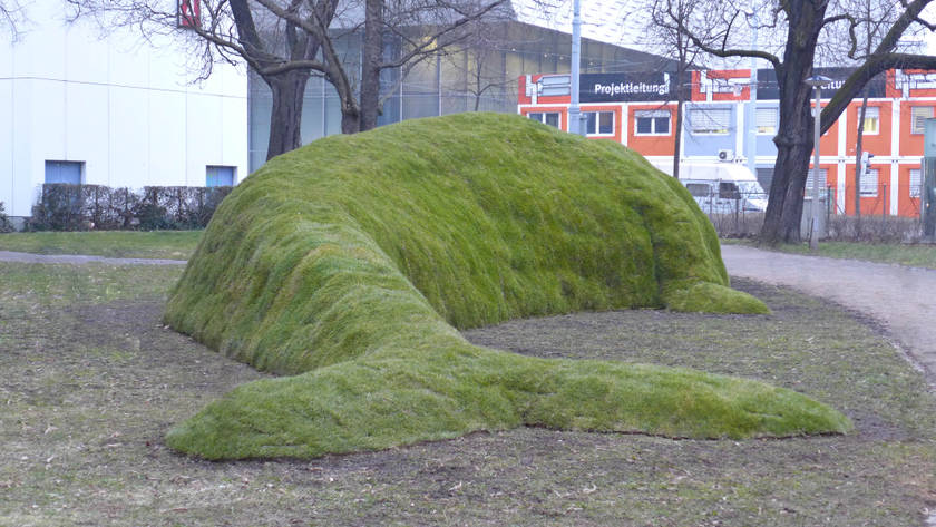 A whale sighting has taken place in the waters of Rhine, an occurrence that has become increasingly frequent since the cetaceans have begun fleeing from polluted seas and rivers in search of clean water. After a long and arduous journey, the exhausted mammal gave out at last upon reaching the city of Basel. During the first week of the sighting there was much excitement among the residents, then soon they became disinterested.  In due time, the whale’s body was dragged through Riehentorstrasse then Riehenstrasse before arriving at a small park behind the Congress Center. The city officials, unsure of what actions to take, held endless meetings with a group in favor of incineration and another for burial. After garnering more than 15,000 “Likes” on Facebook, the rotting corpse was discarded, only to be pecked away by crows but they too found the whale meat too much to deal with. Under the circumstances of a shortage of arable land, the mass of humus became an unexpected windfall for the residents. Timidly at first, then more and more openly, the neighbors began sowing and harvesting plump vegetables. In the span of a few months, the dramatic mound became a garden of abundance where the fertile cetacean soil produced subsistence for the citizens.
