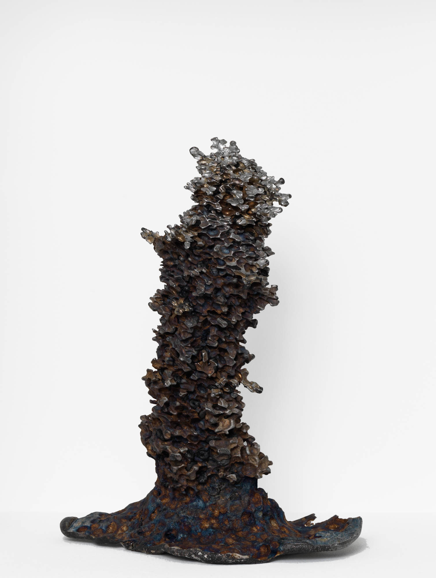 Dans un questionnement sur l’apparition des formes, Gonzenbach reproduit des phénomènes géologiques avec d’autres matériaux. Pour créer des stalagmites, il verse de l’aluminium en fusion dans des récipients remplis de pâtes en blé dur. Le métal liquide se fraie un chemin entre les pâtes, pour se solidifier un peu plus tard, créant une empreinte négative des pâtes. La forme exacte de la sauce tomate si on pouvait la visualiser entre les nouilles. Ces formes primitives d’aspect ressemblent à des statuettes du magdalénien.