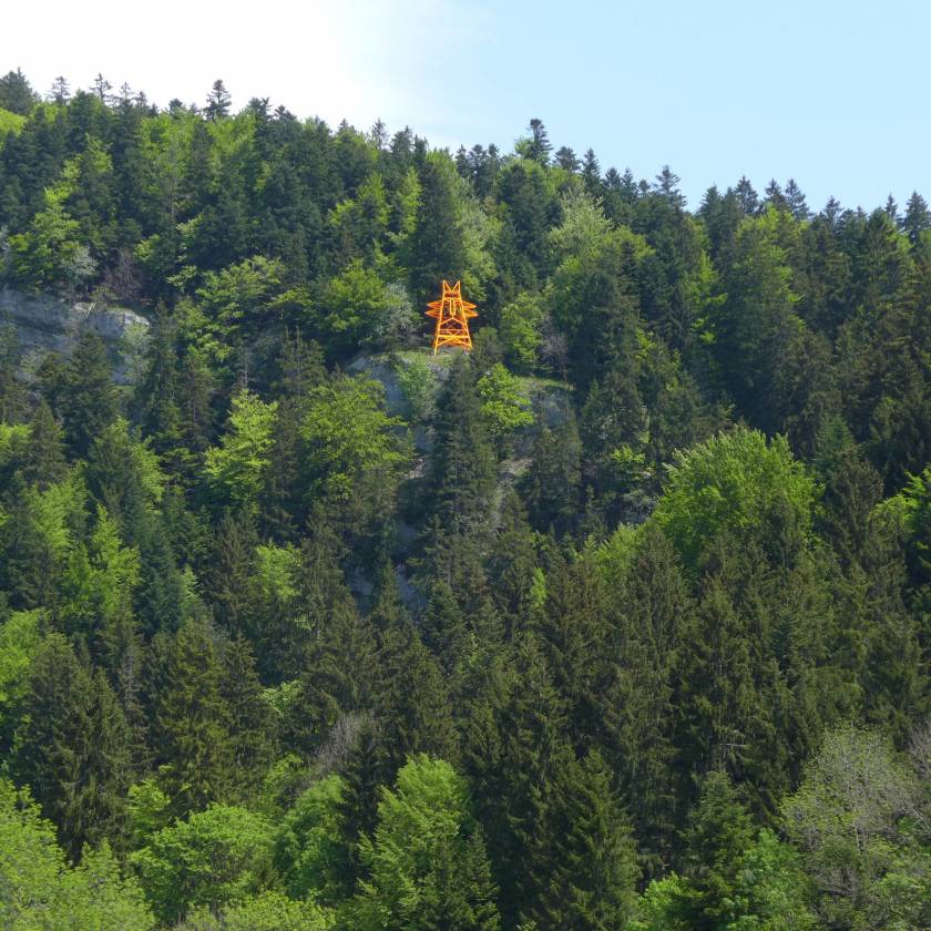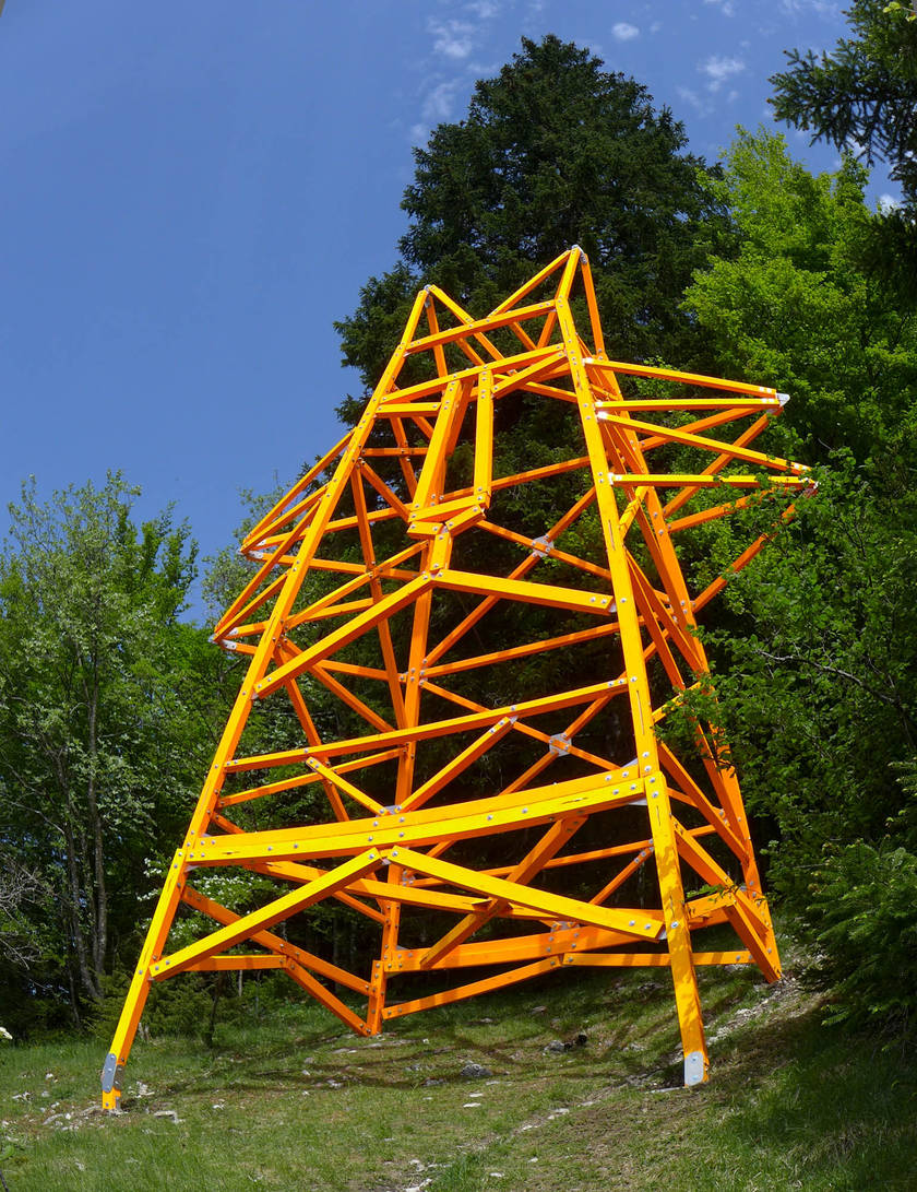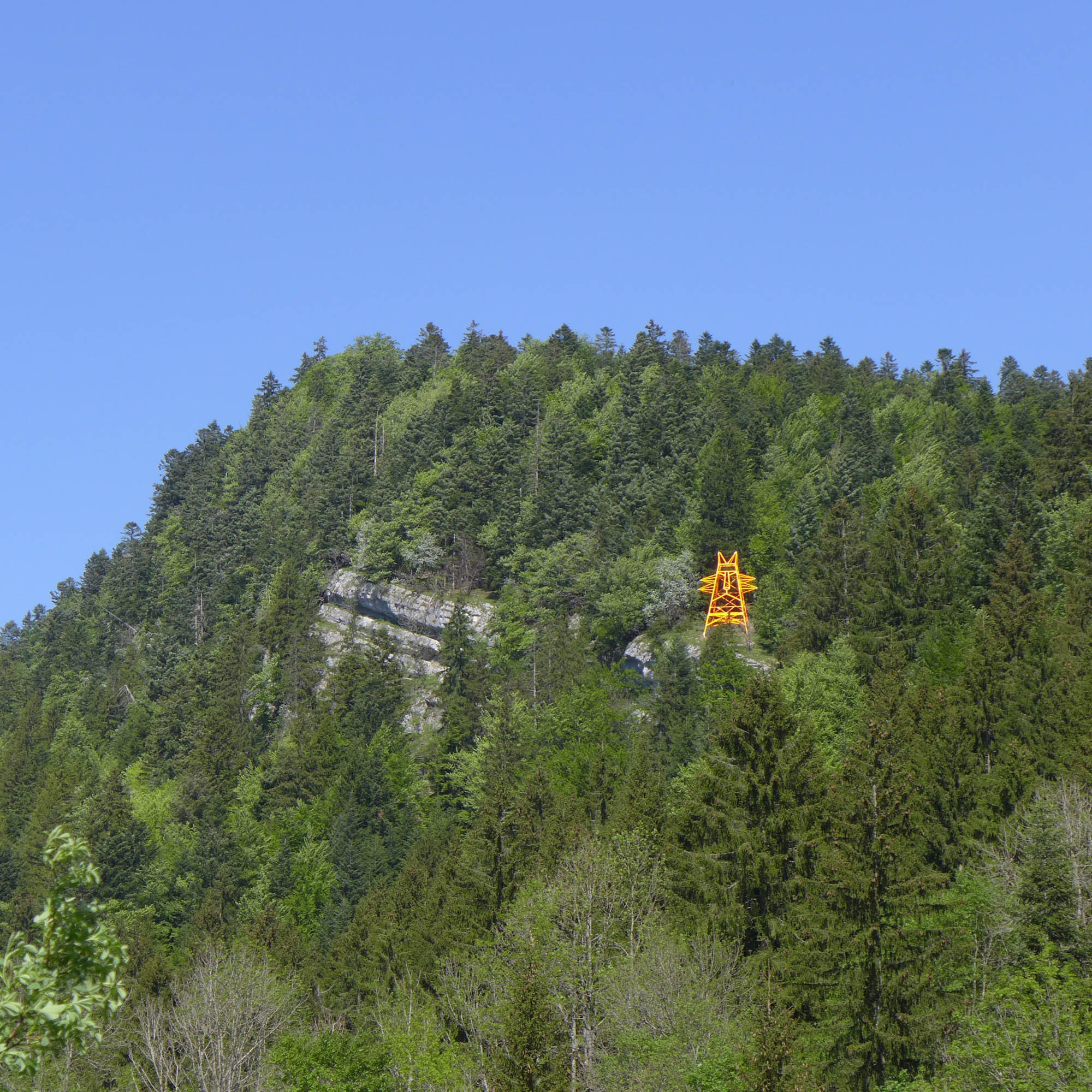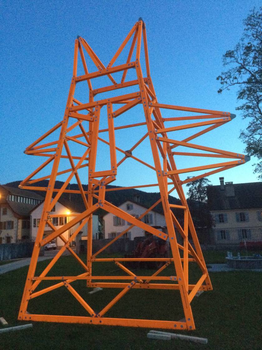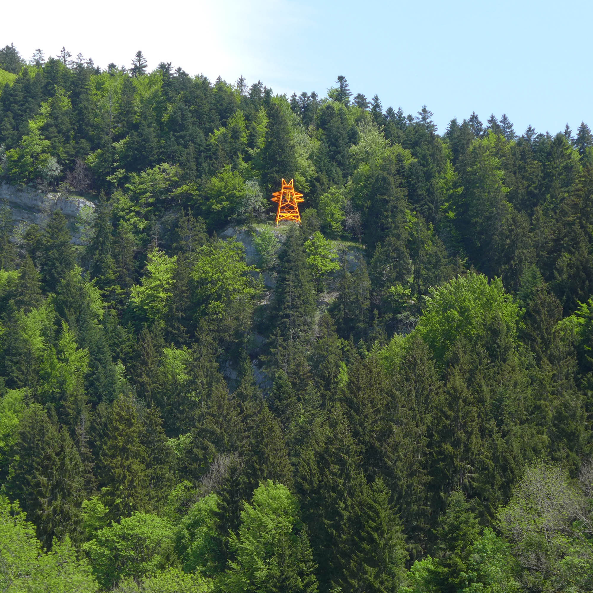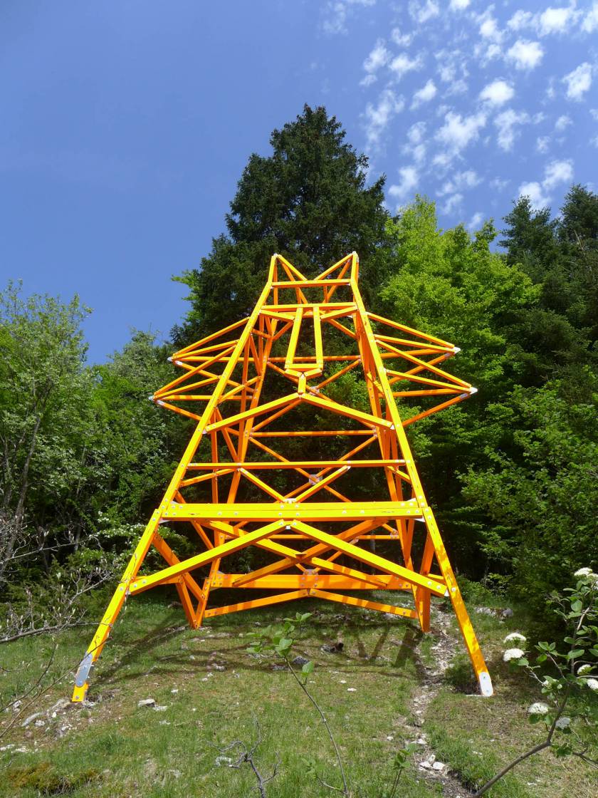 Installation of an Electric Cat Pylon, as a totem et lighthouse for the town of Môtiers.
