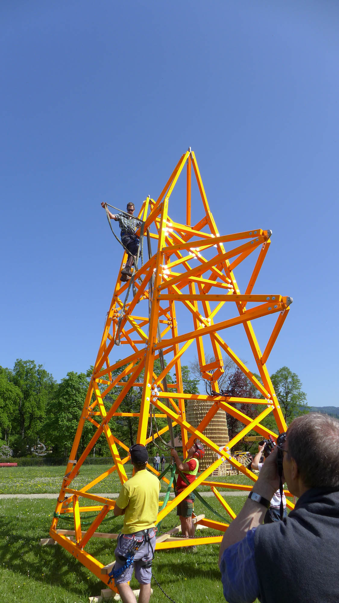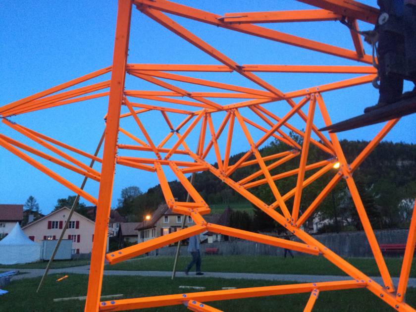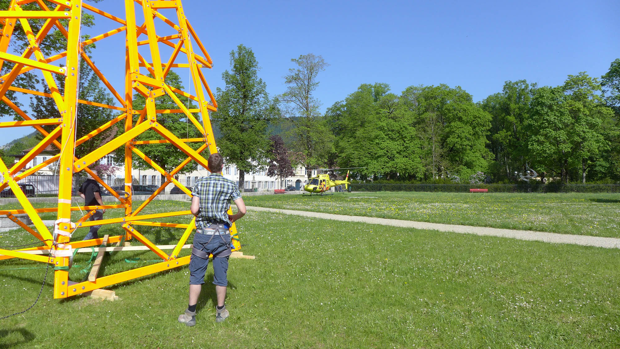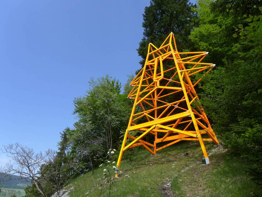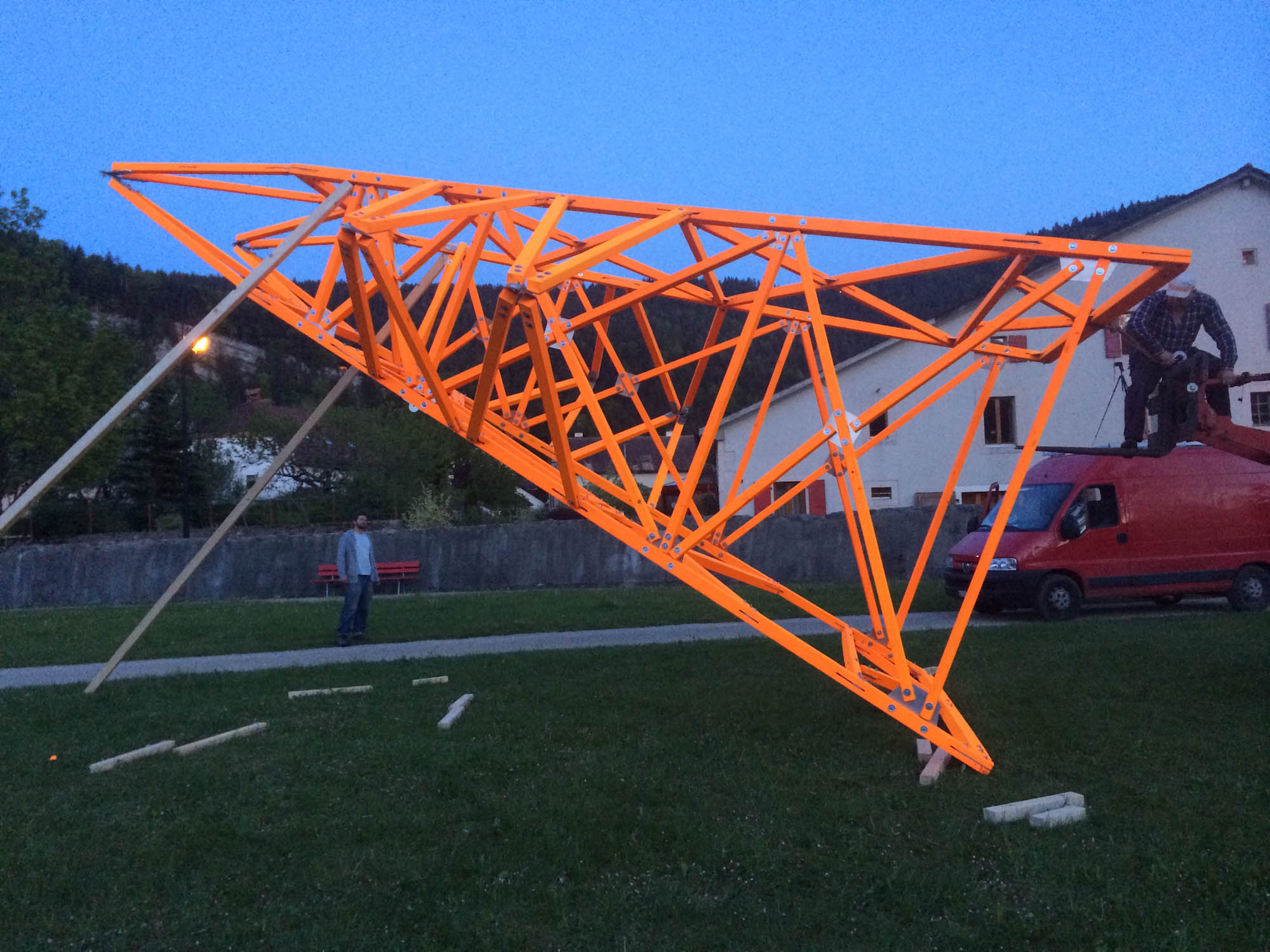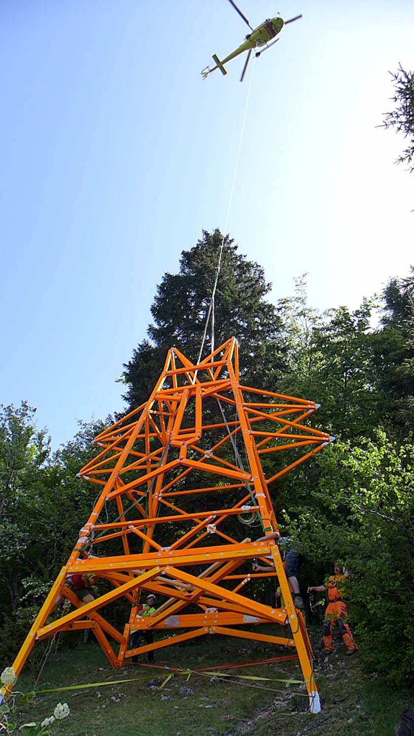 Installation of an Electric Cat Pylon, as a totem et lighthouse for the town of Môtiers.