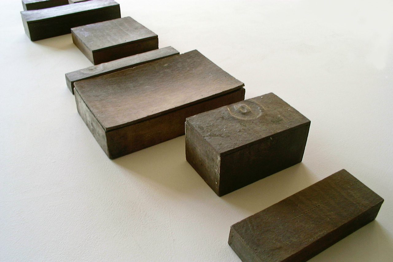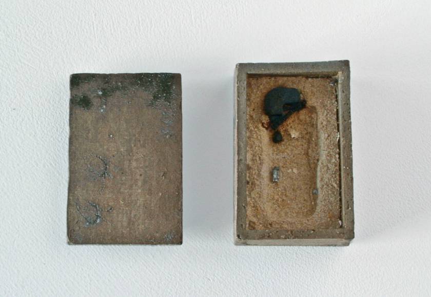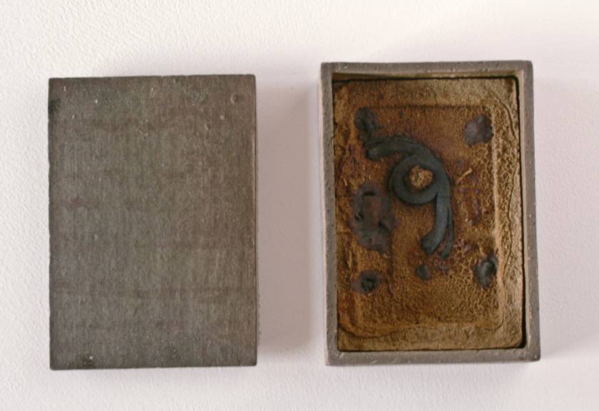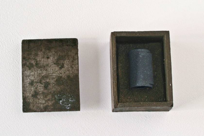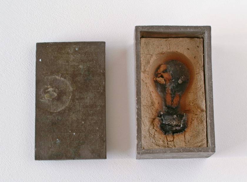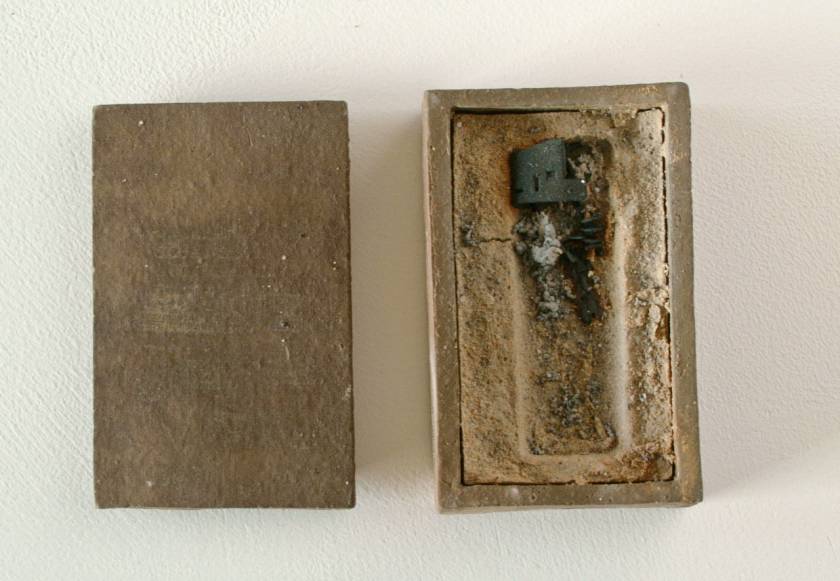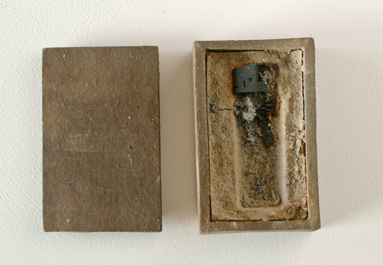 Realized in the land of the Rising Sun and echoing the Japanese art of wrapping, Funeral Rites consists of objects, such as batteries, a light bulb, a tube of toothpaste, a VHS, a lighter, etc., that are enclosed in ceramic boxes that act as coffins. Instead of being disposed like most everyday banal things, here the objects – at the end of their use, purpose – are treated to a noble ceremony. As if in the ritual of cremation, they are fired at 1200?C burning off all, including plastic and glass, but the outline traces of the oxidation of metal parts.