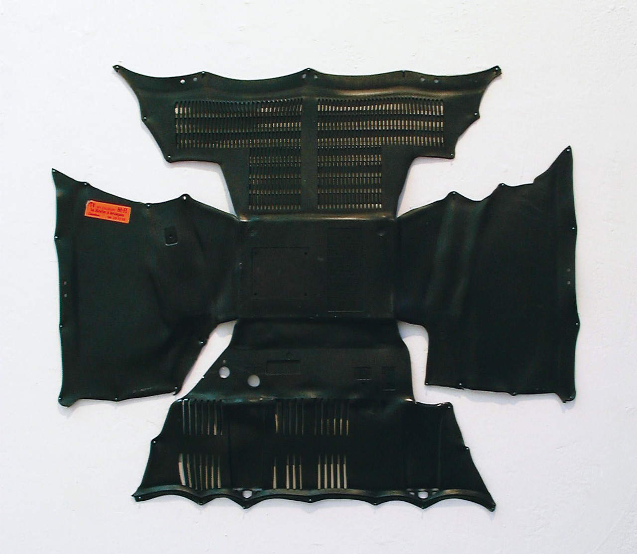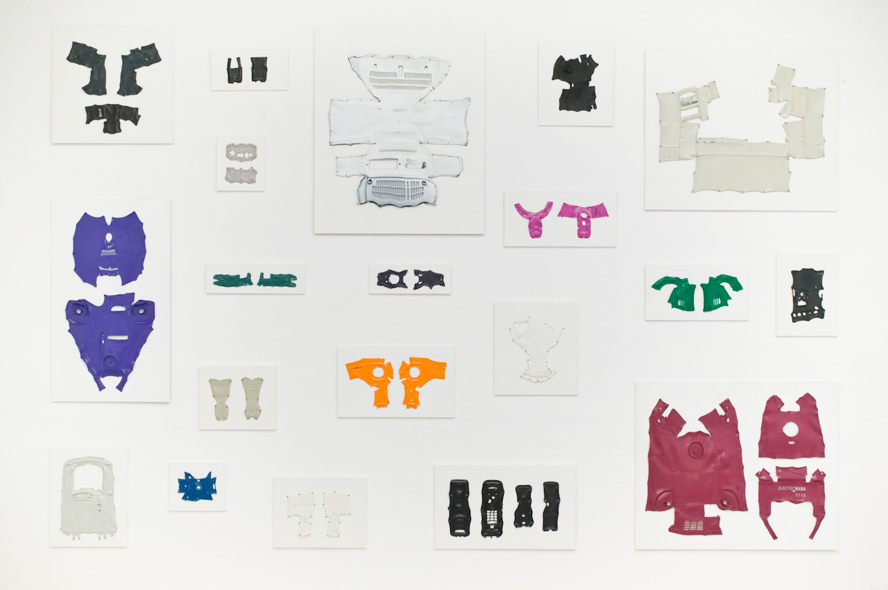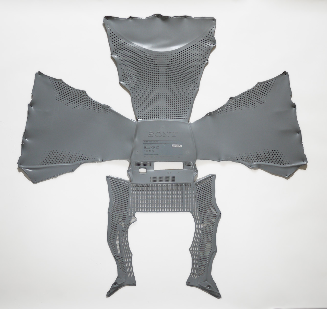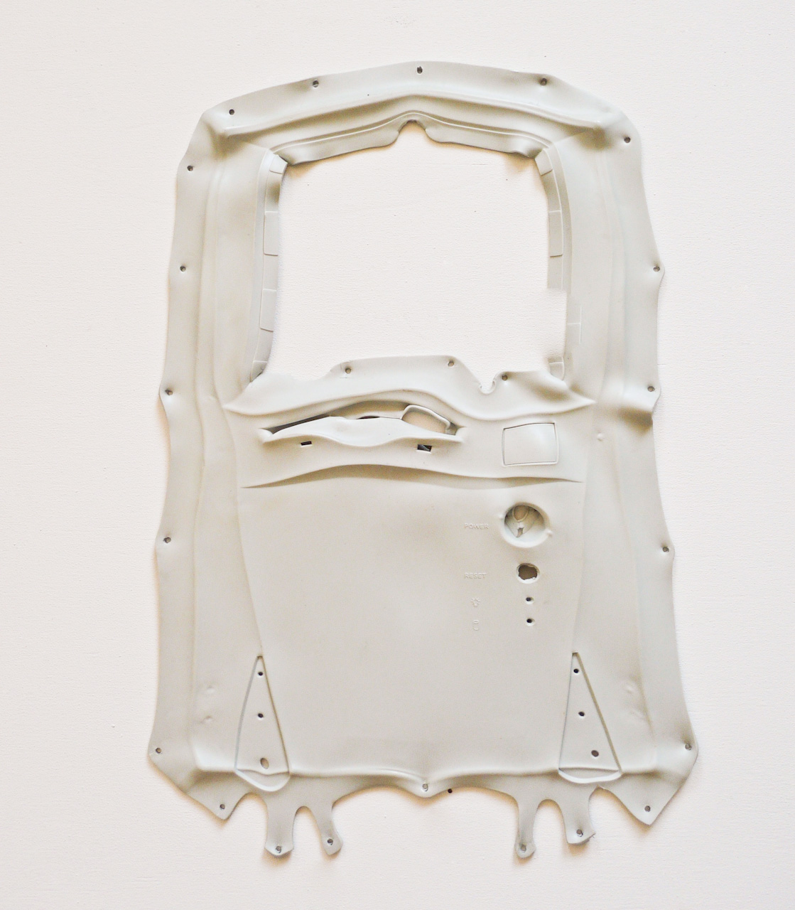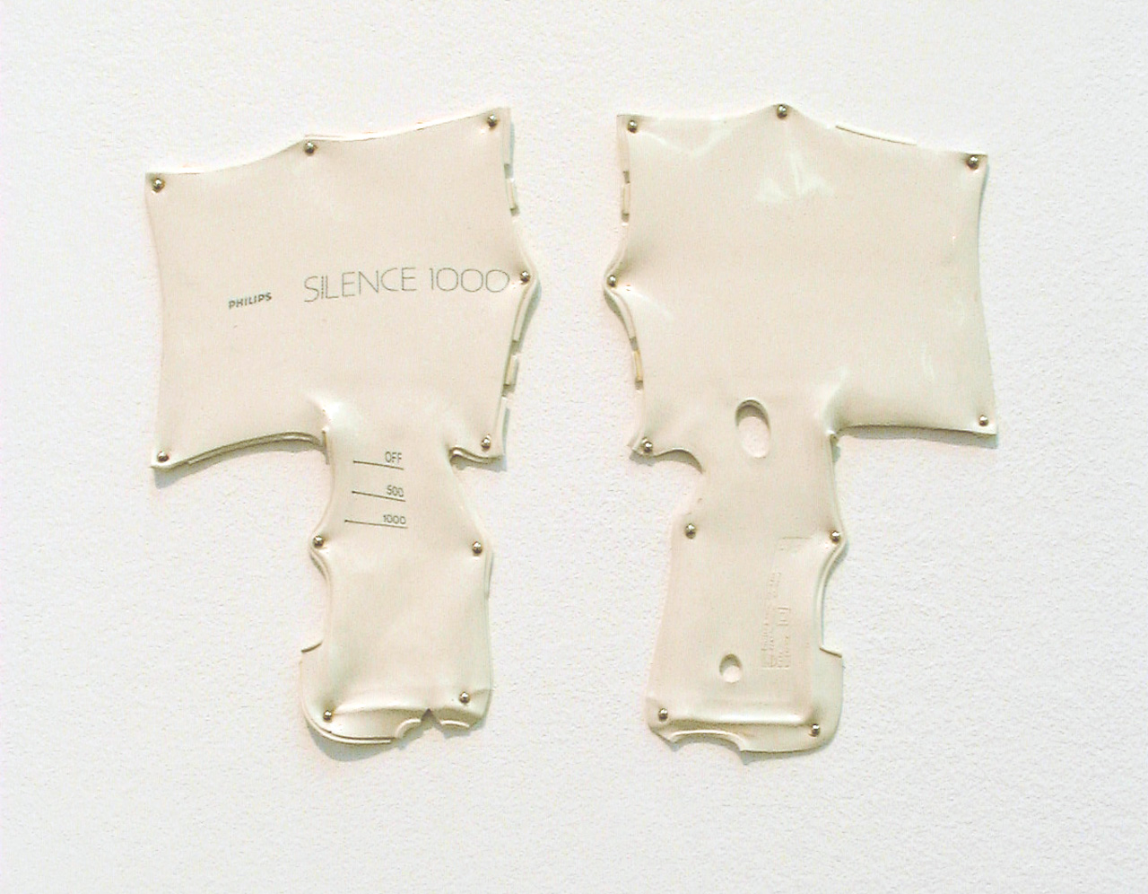 In this ongoing series, the artist plays the role of a taxidermist for the everyday household appliances – some on the verge of extinction with the advance of technology. For each electric appliance the plastic shell has been “skinned” like animal hide and flattened to be hung like a wall decoration. In the modern age, appliances are categorized as domestic like animals, and through this immortalizing and anthropomorphic process, without the content, the plastic “skin” becomes just a layer with no function, just a reminder.
