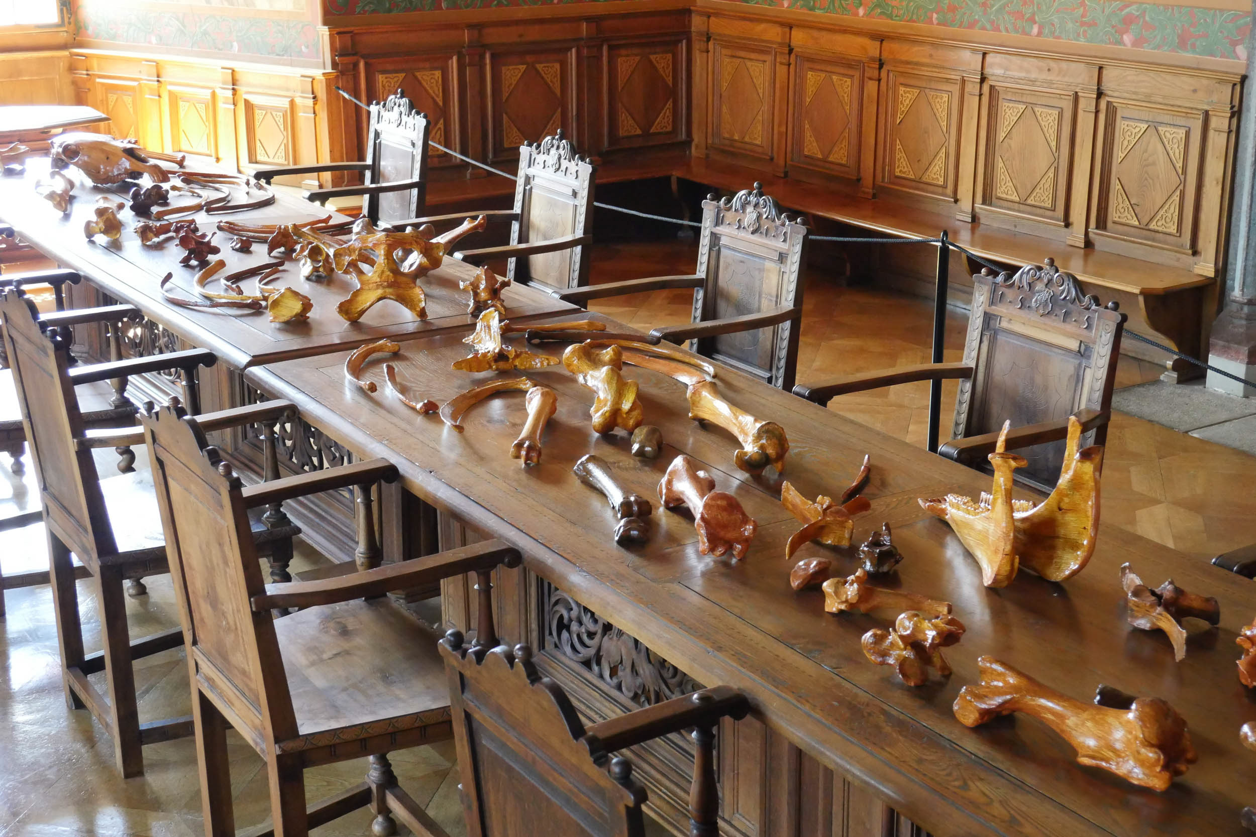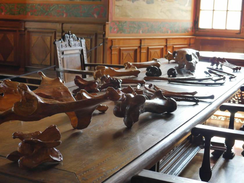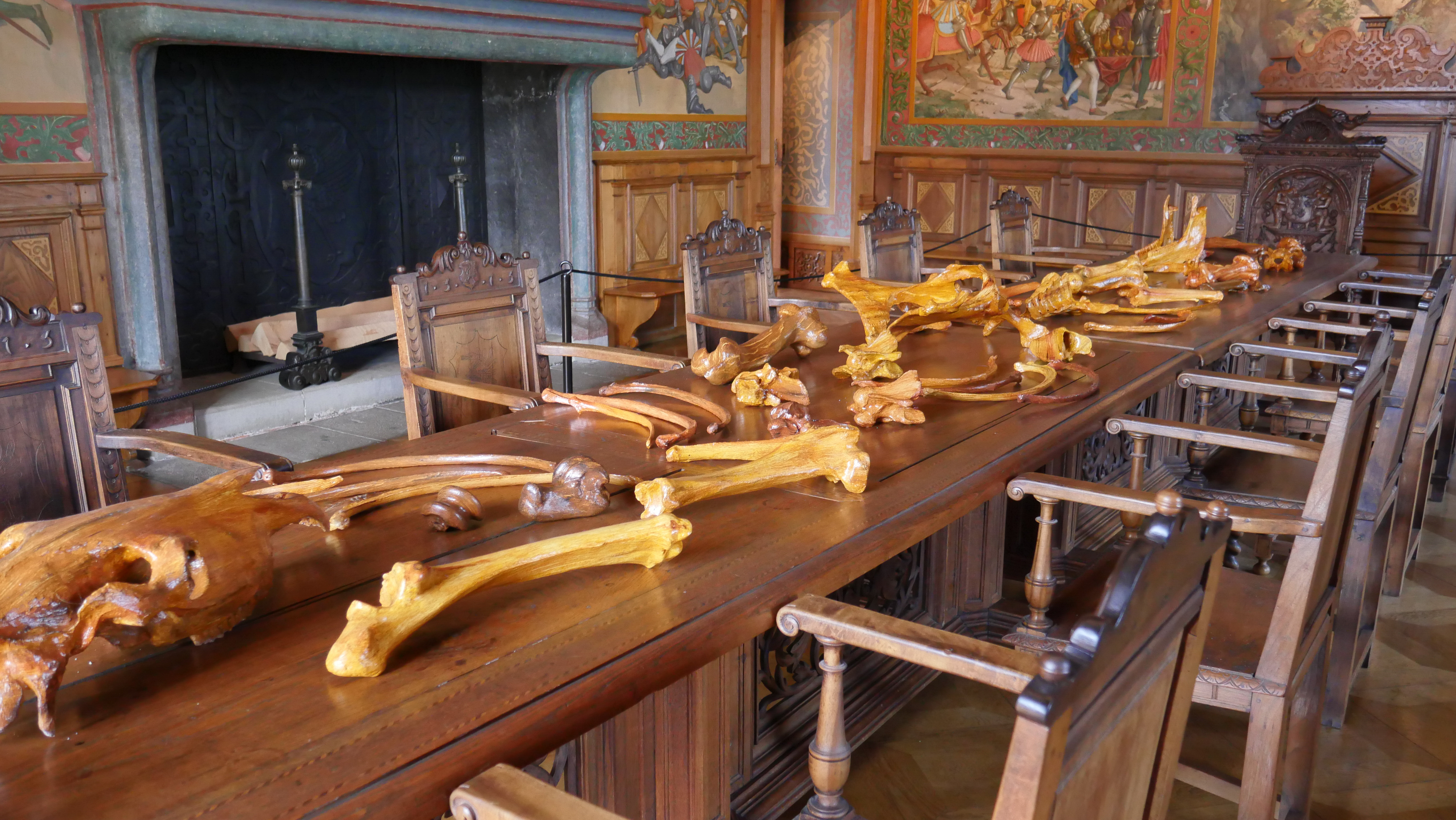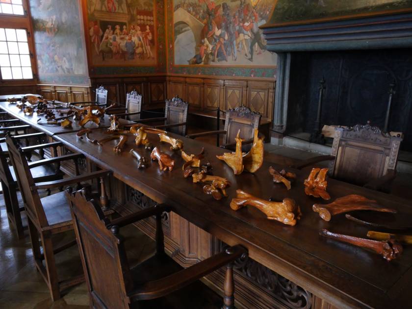 It is actually a real horse skeleton, painted in «faux-bois». All the elements of the story of Troy are present here: the wooden horse, the bones, the remains. And what would have happen if the Trojans would have eaten the wooden horse?