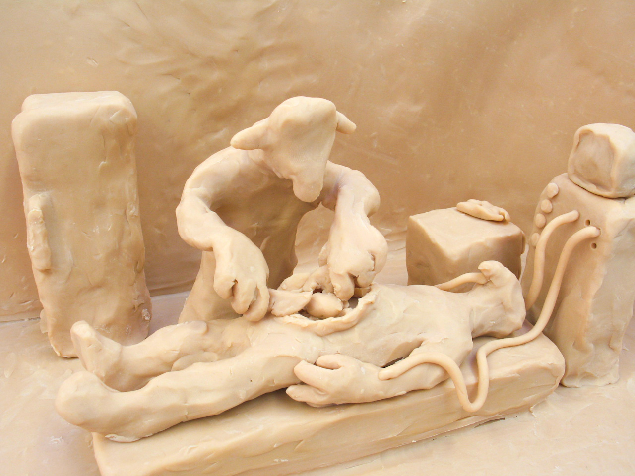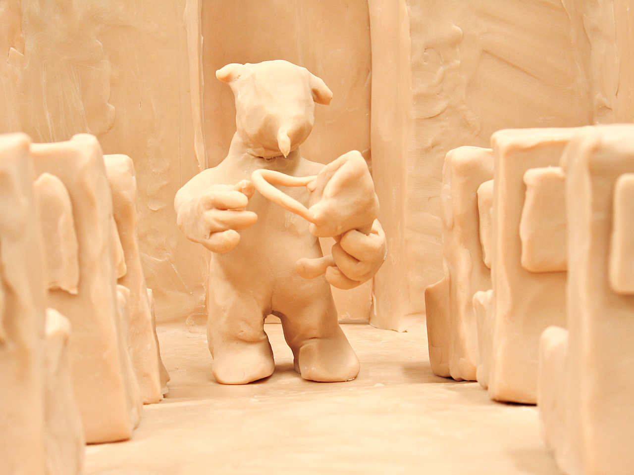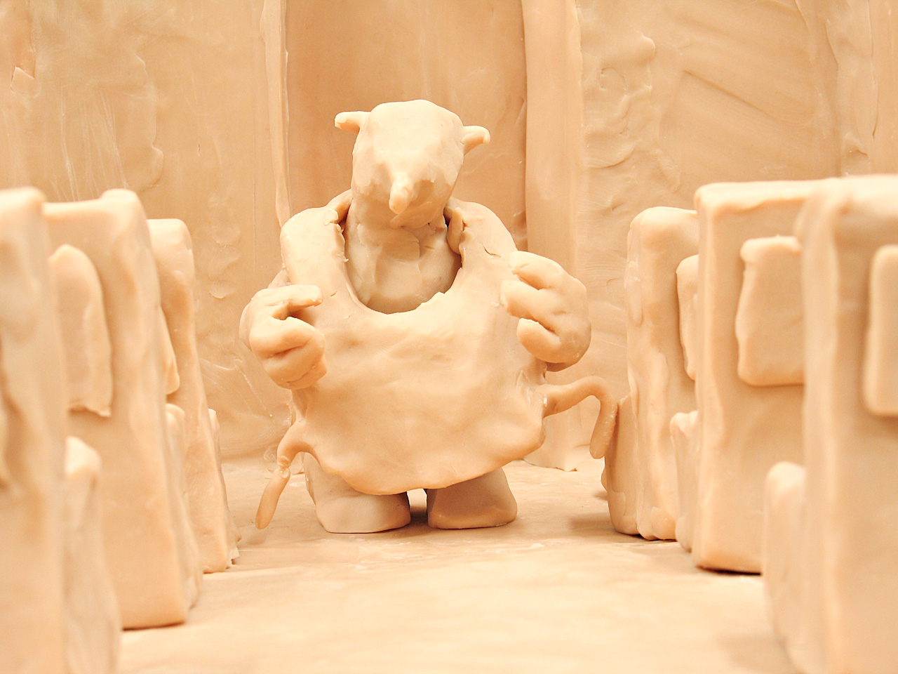 Une série d’une vingtaine de vidéos très brèves (durant chacune moins d’une minute) raconte autant d’actions sans intérêt de la vie quotidienne. La série est présentée simultanément et chaque vidéo tourne en boucle afin d’insister sur l’absurdité du geste, répété à l’infini. Une couleur monochrome uniformise ce monde fait de pâte à modeler Caran d’Ache appelée « chair » où se côtoie le boucher, le chirurgien, l’hôtesse de l’air et le nettoyeur d’éléphants.