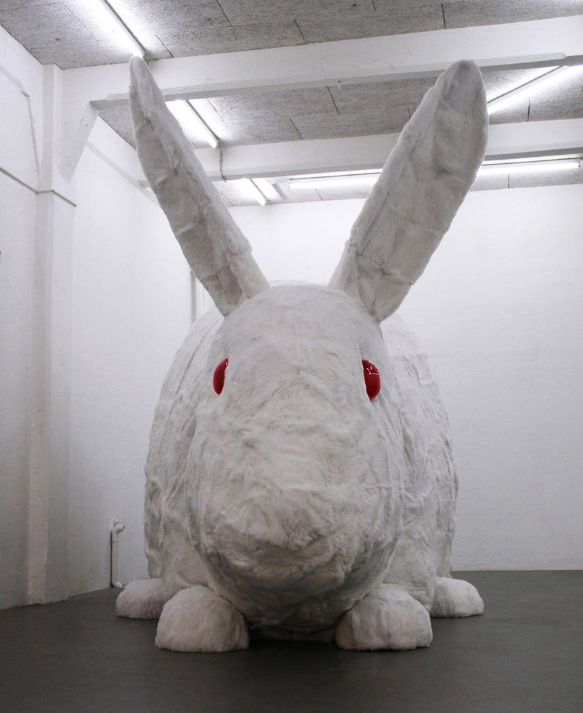 Sous ses airs sympathique et familier, avec sa robe blanche immaculée et ses formes tout en rondeurs, ce lapin géant évoque l’univers réconfortant de l’enfance. Great Stuffed Rabbit se révèle cependant morbide quand on apprend qu’il a fallu assembler 650 peaux de lapins pour l’habiller. Autant de petites âmes sacrifiées pour créer un gigantesque objet, mais est-ce si dramatique que cela quand on sait que le nombre de peaux de lapin mises sur la marché s’estime au niveau mondial à environ un milliard par année ? Certains se rassurent en sachant qu’il ne s’agit là que des dégâts collatéraux à notre consommation de viande.