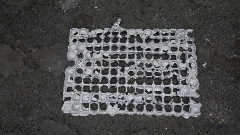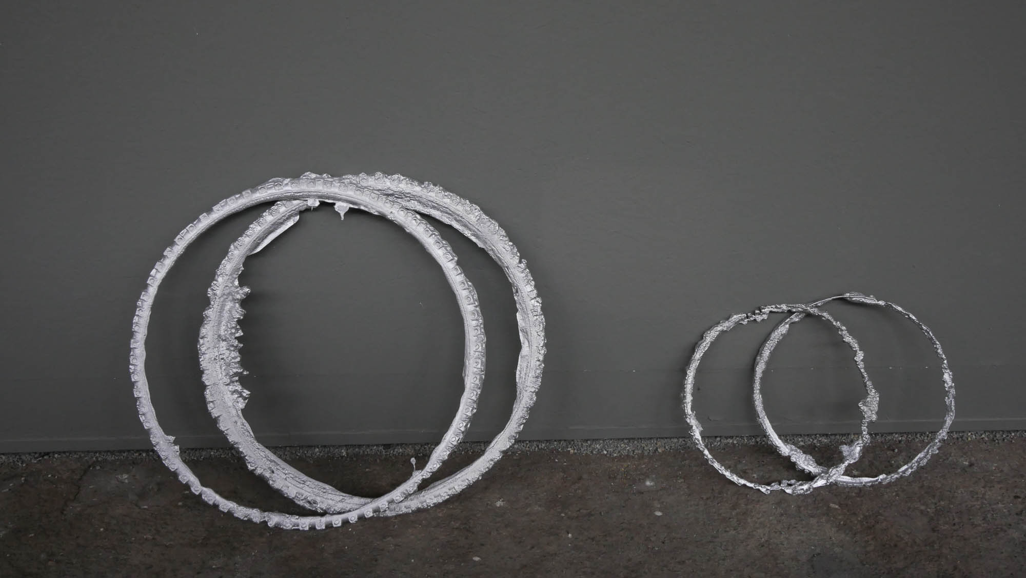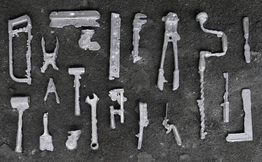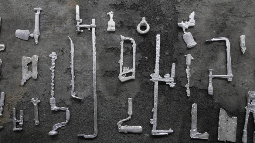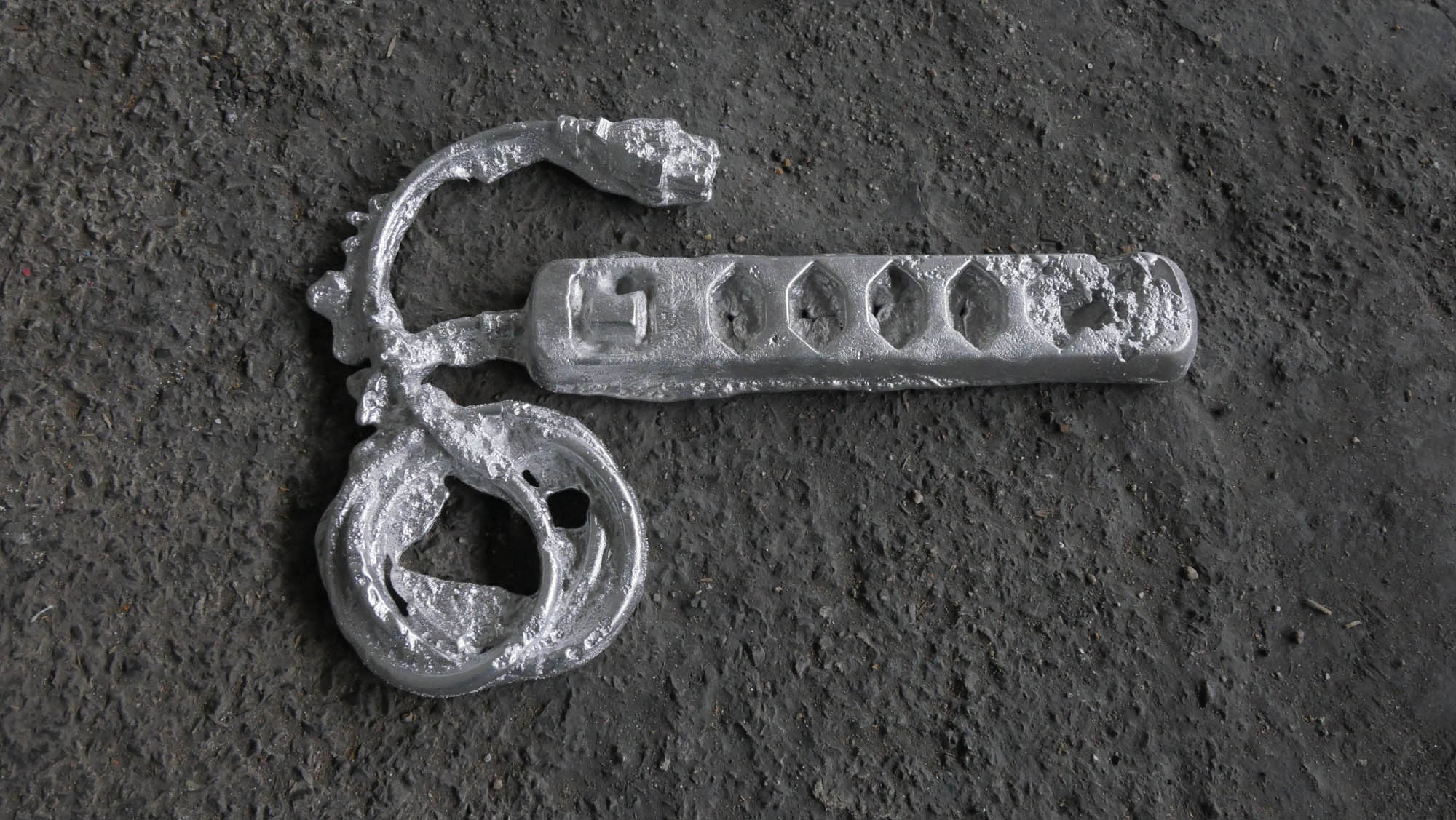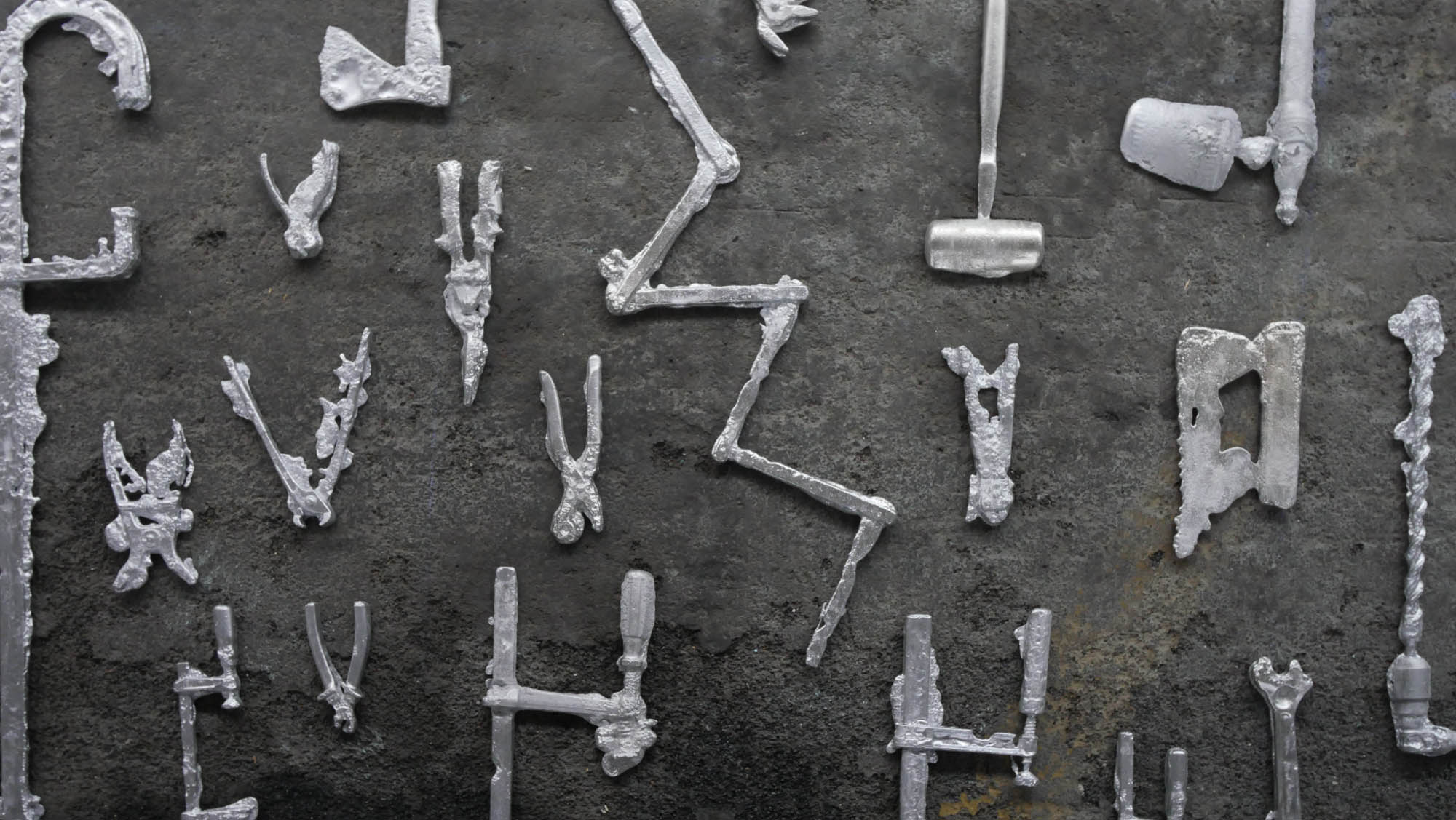 Une usine désaffectée transformée en centre d‘art contemporain retrouve son apparence d‘origine le temps de l‘exposition. Des objets y sont produits, ou plutôt des semi-objets, des fantômes ou des ombres. En tout une tonne d‘aluminium est fondue pour remplir l‘usine d‘ombres, ombres d‘outils, de mobilier, des choses dont on ne sait pas très bien si elles viennent d‘apparaître ou si elles sont en train de disparaître. Le geste de l‘Homme: transformer de la matière, lui donner une forme, à défaut d‘une fonction.